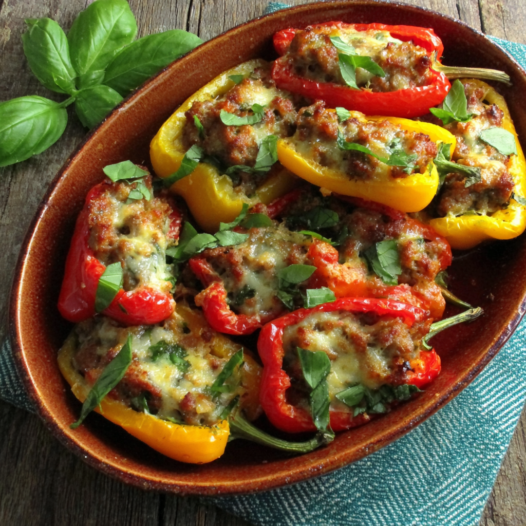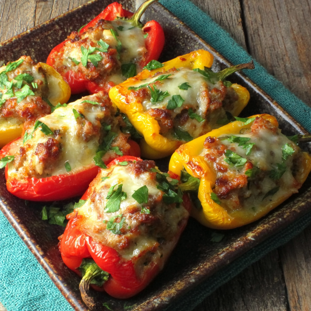 Spicy Sausage and Cheese Stuffed Mini Peppers