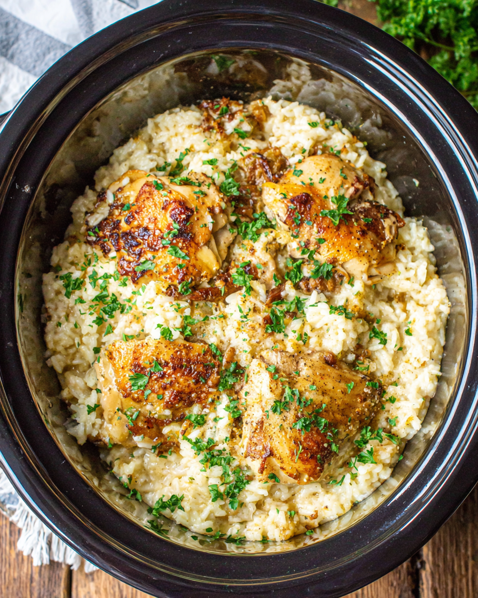 Crockpot Chicken and Rice made approachable with clear cues, pantry staples, and flexible swaps...
