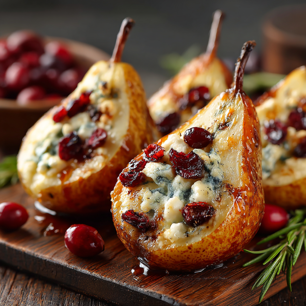 Savory Baked Pears with Feta, Honey, and Cranberries