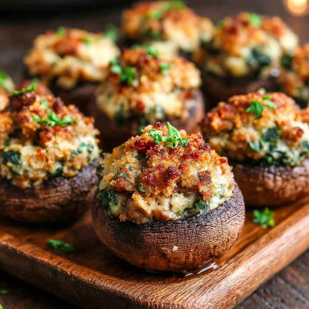 Savory Cheesy Sausage and Spinach Stuffed Mushrooms