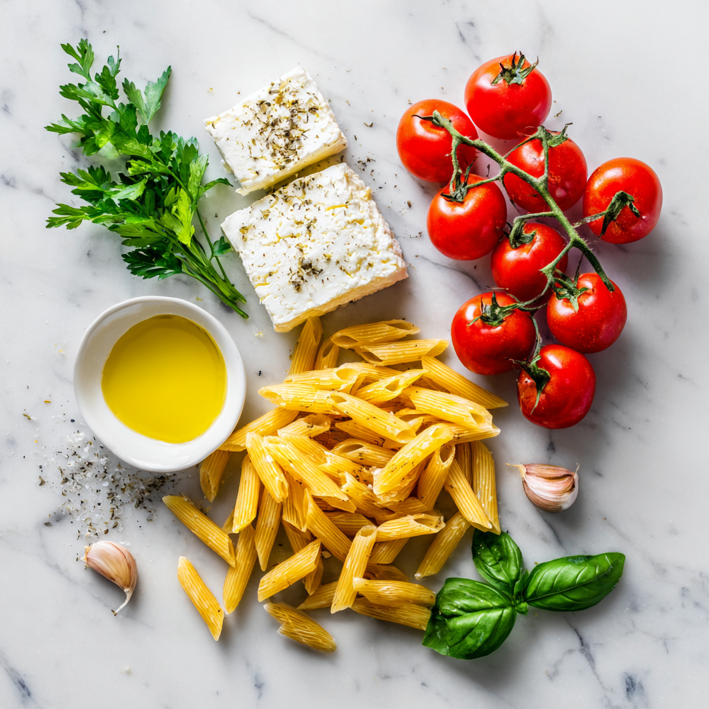 The base of the dish, pasta provides a hearty texture and soaks up the flavors from the feta and vegetables. Choosing a shape like penne or fusilli helps to hold on to the sauce, enhancing each bite. - 200g feta cheese