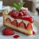 Strawberry puree infuses the cheesecake with a natural fruity flavor and stunning color, making each slice visually striking.