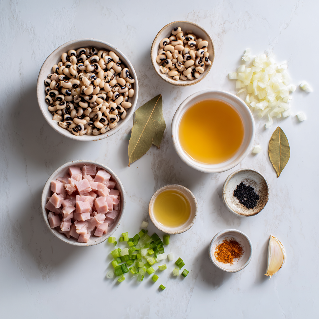 The star ingredient, dried black eyed peas have a mild, earthy flavor and creamy texture when cooked. They are rich in protein and fiber, making them both nutritious and satisfying. - 4 cups water