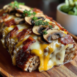 Rich and savory, this Bacon Mushroom Swiss Cheese Meatloaf combines smoky bacon with sautéed mushrooms and creamy Swiss for a comforting dinner delight.
