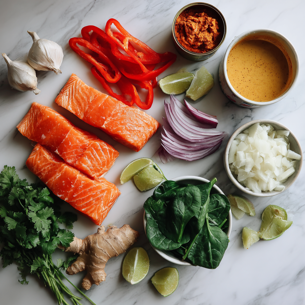 Coconut milk provides a creamy and slightly sweet base, balancing the spices while creating a velvety sauce that clings to the salmon.